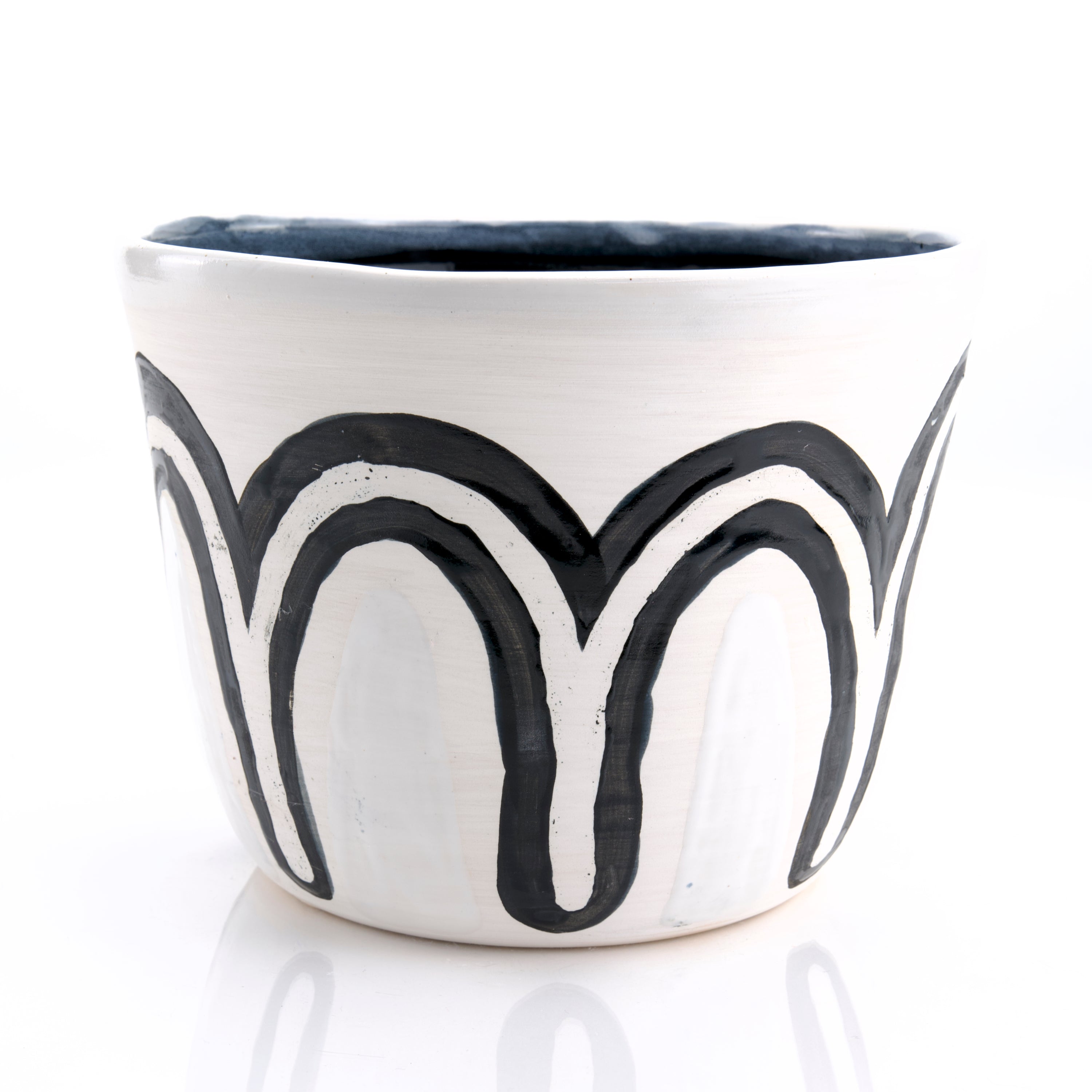 Handcrafted "Spots" Black & White Planter Pot from Meghan Bergman Ceramics. Wheel thrown with white stoneware and underglaze, fired in an electric kiln.