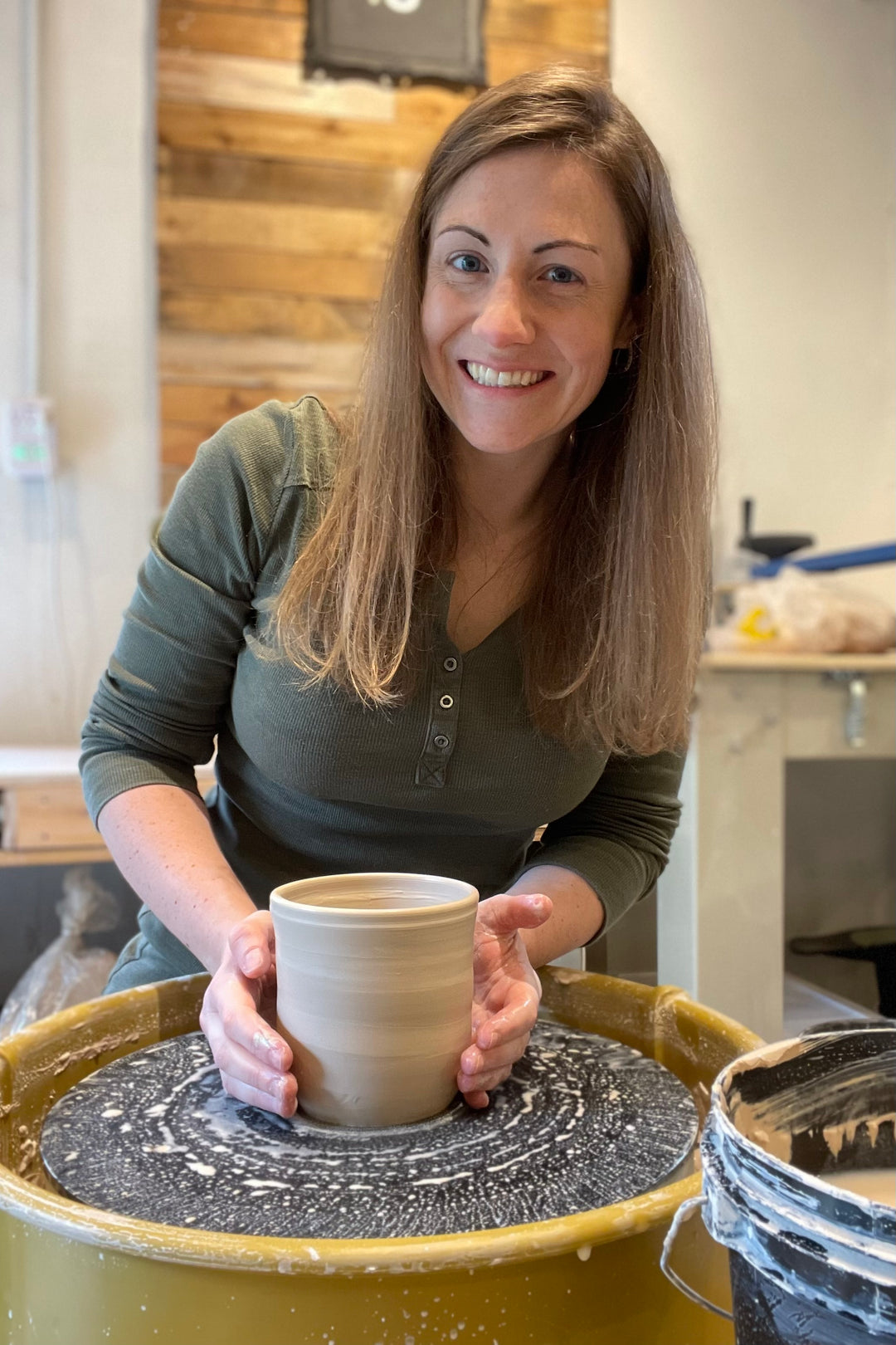 The beauty of pottery is that there are tiny details that as a potter I will add to each piece to form the clay and give it personality. When I throw on the pottery wheel, after centering the clay and pulling up the clay, I'm thinking about the function or purpose of the vessel: if I push with my outside hand the piece will be taller like a cup or vase, and if I push more with my inside hand the piece will be wider like a bowl.
